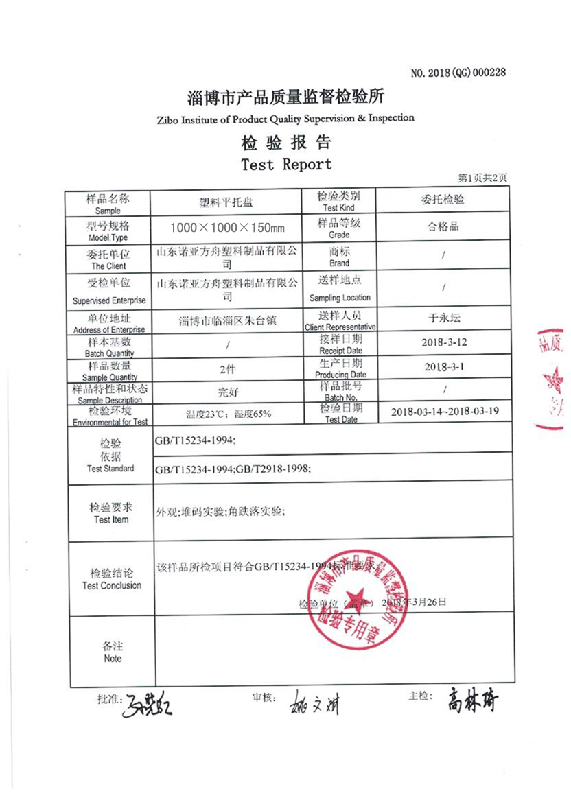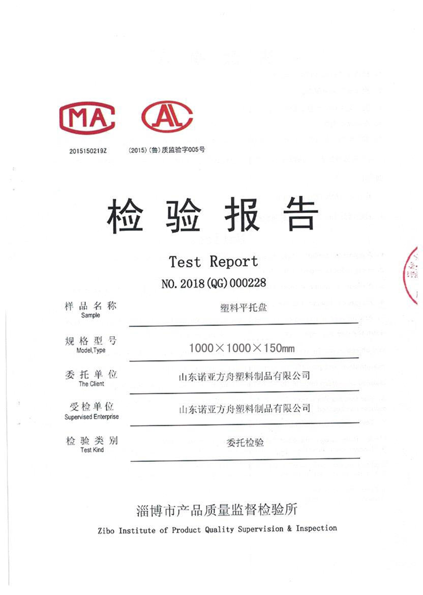 (塑料托盤質檢報告)淄博市產(chǎn)品質量監(jiān)督檢驗所